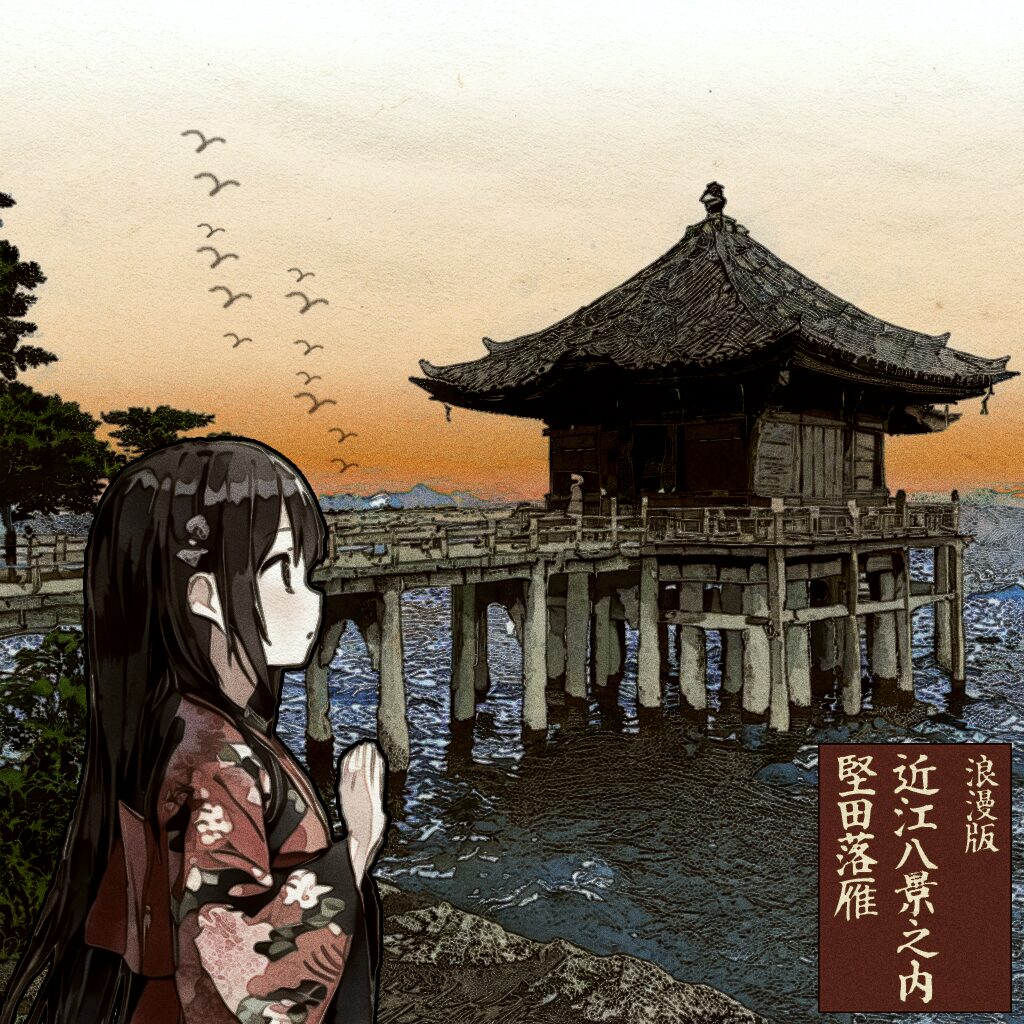 近江国の八つの名所を描いた古典主題『近江八景』を、現地写真とAI・Photoshopで再構築したシリーズです。