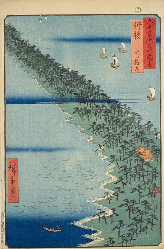 題材は歌川広重の《六十余州名所図会》にも描かれた丹後・天の橋立。