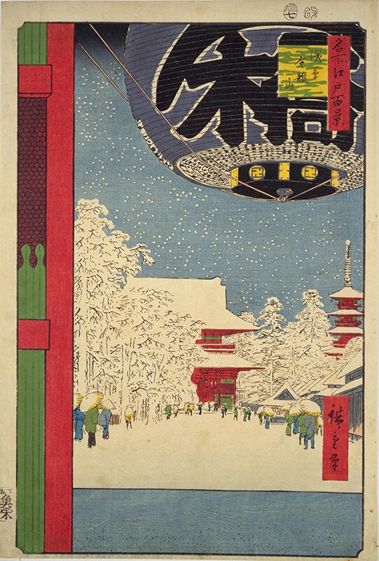 題材は歌川広重の《名所東都百景》にも描かれた浅草寺。