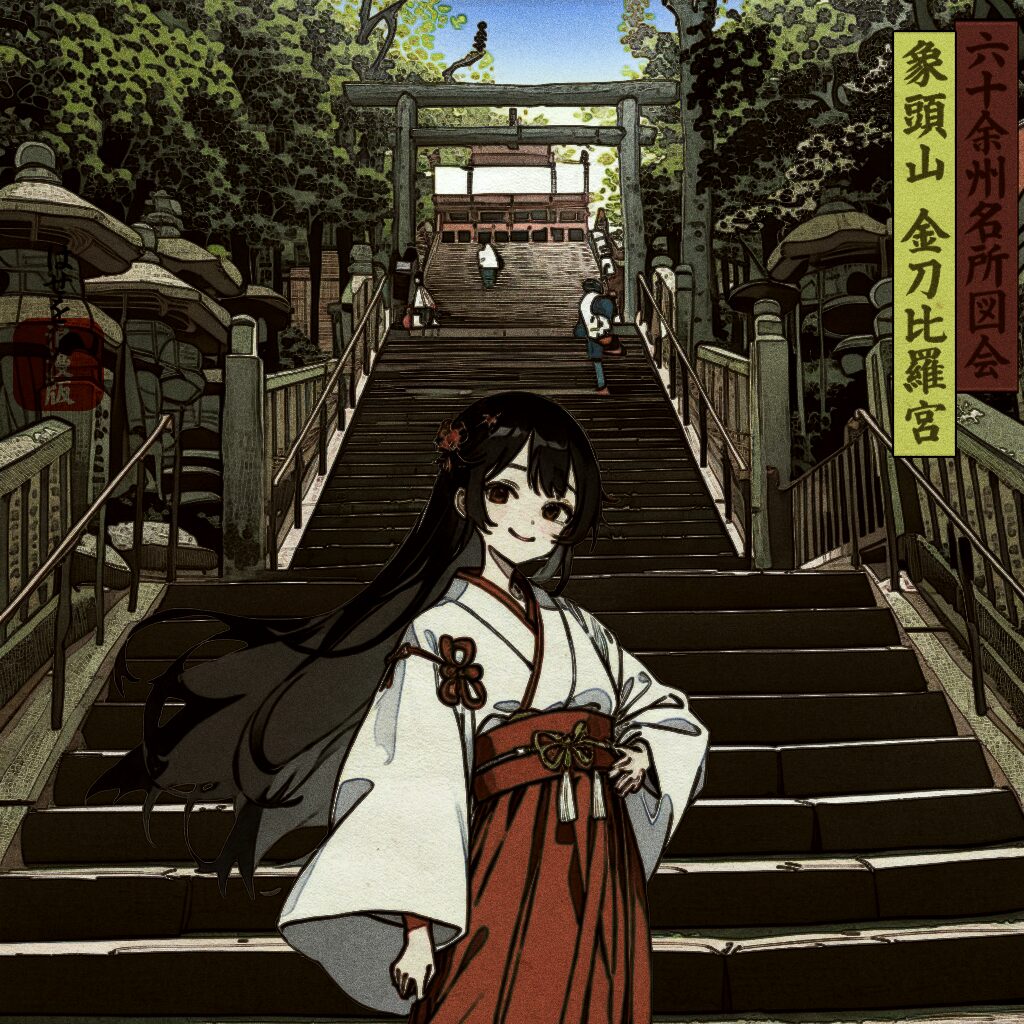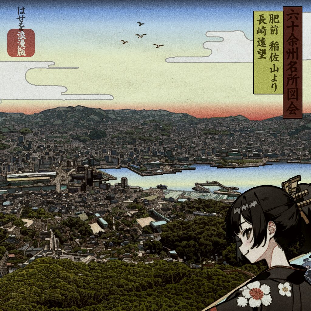 広重の名作『六十余州名所図会』に描かれた名所を、現地写真とAI・Photoshopで再構成したシリーズです。 各地の名勝をテーマに、浮世絵の雰囲気を活かしつつ、現代的な視点で情景を再解釈した作品群となっています。