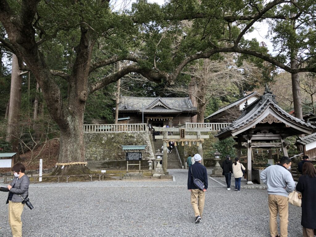 そんな日坂宿の西の入口、宮村に鎮座するのが事任八幡宮(ことのままはちまんぐう)です。創建時期は定かではないものの、古くは真知乃神(まちのかみ)、任事神社(ままのことじんじゃ)などと呼ばれ、『延喜式神名帳』には「己等乃麻知神社」として記載されています。大同2年(807年)、坂上田村麻呂が東征の折に、北側の本宮山から現在地へ遷座したという伝承も残ります。