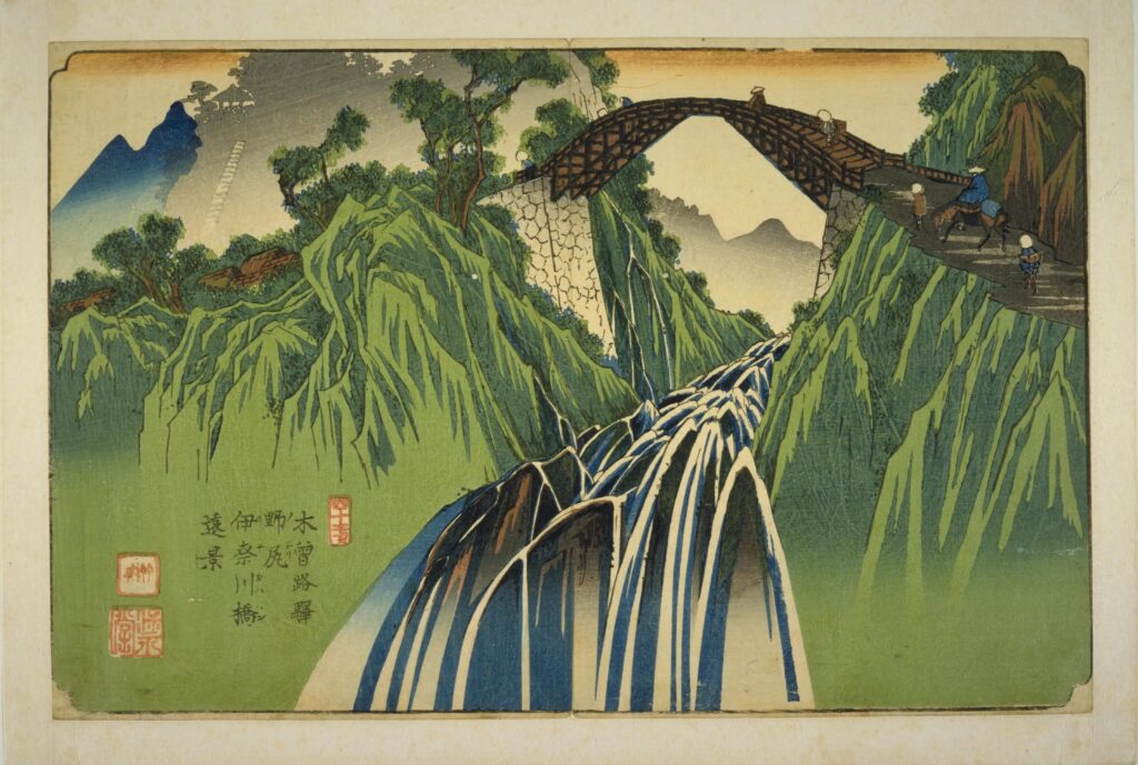 題材は歌川広重・渓斎英泉の《木曽街道六十九次》にも描かれた野尻・岩出観音。