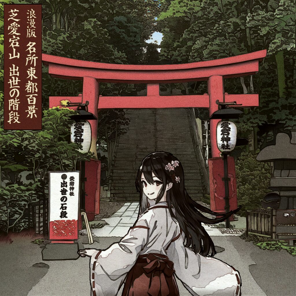 本作では、現地写真とAI技術・Photoshopを組み合わせ、愛宕神社と出世の階段が持つ歴史的背景と、年始にふさわしい前向きな空気感を、浪漫版として再構成しています。