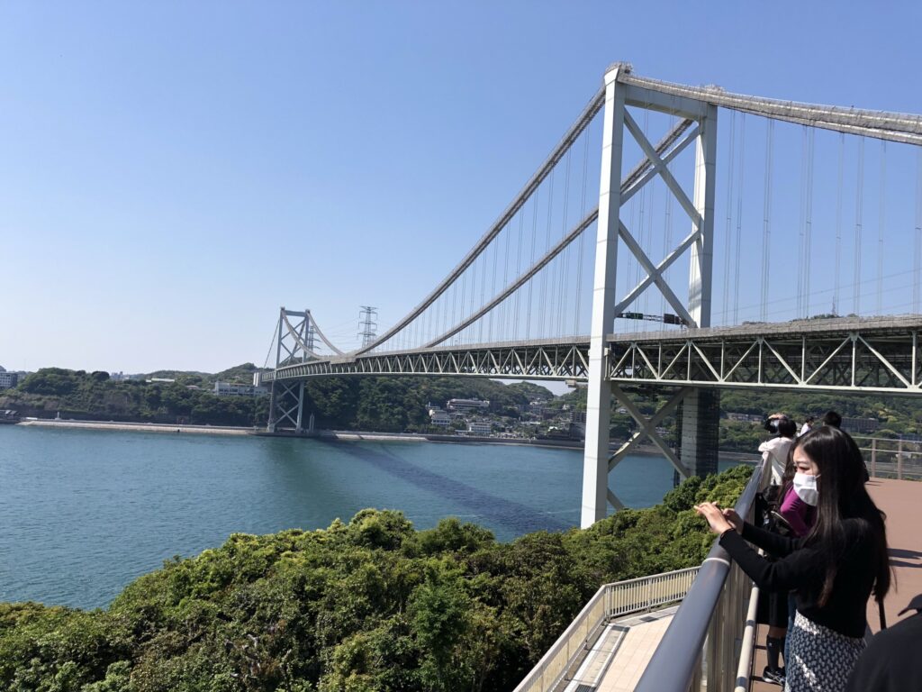 海峡を行き交う船と九州を結ぶ橋梁の姿は、歴史と現代が交差する象徴的な風景です。